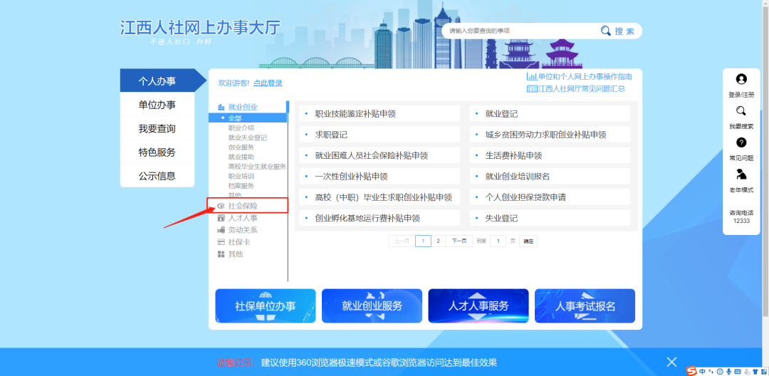 (3)江西政務(wù)服務(wù)網(wǎng)、江西人社網(wǎng)上辦事大廳:本人注冊(cè)并登陸江西政務(wù)服務(wù)網(wǎng)(http://www.jxzwfww.gov.cn)或江西人社網(wǎng)上辦事大廳(http://zwfw.rst.jiangxi.gov.cn),選擇“社會(huì)保險(xiǎn)”找到“失業(yè)保險(xiǎn)”,選擇“失業(yè)保險(xiǎn)金申領(lǐng)”或“失業(yè)補(bǔ)助金申領(lǐng)”點(diǎn)擊填寫相應(yīng)信息申領(lǐng)。