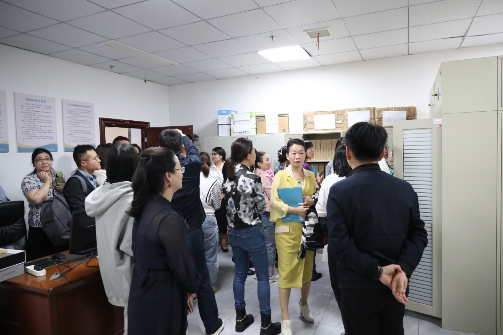 緊接著大家共同參觀了檔案室。余主任充分肯定了學(xué)校在臺(tái)賬管理方面的規(guī)范和嚴(yán)謹(jǐn)。
