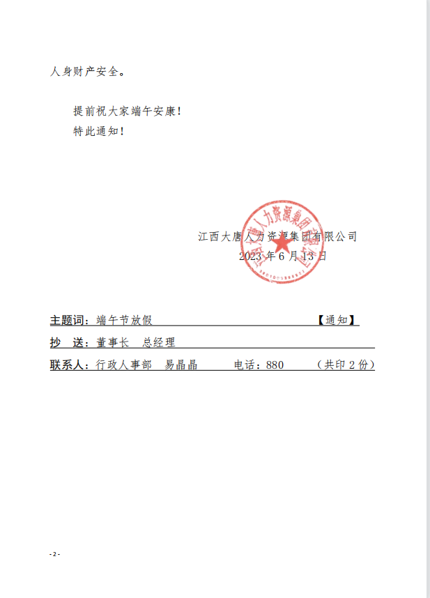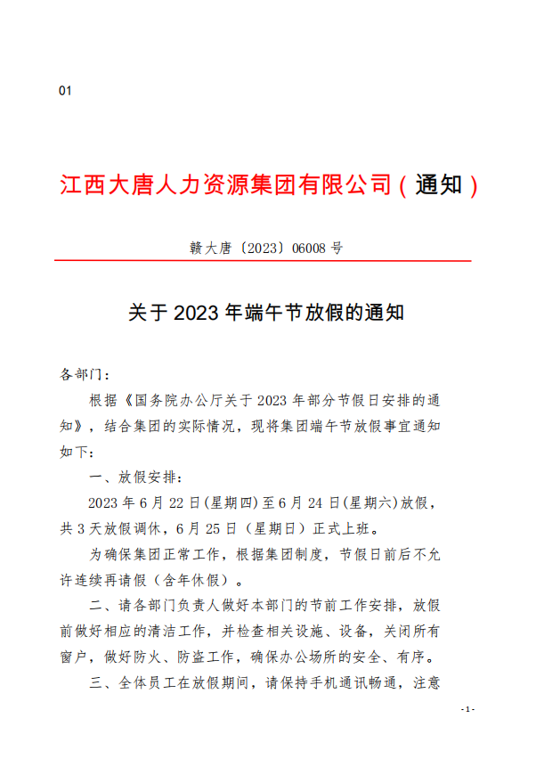 集團(tuán)端午節(jié)放假事宜通知